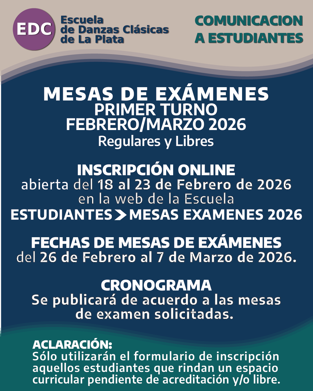 MESAS DE EXÁMENES 2026 FORMULARIOS DE INSCRIPCIÓN A MESAS: CARRERA DANZAS CLÁSICAS CARRERA DANZA CONTEMPORÁNEA CARRERA EXPRESIÓN CORPORAL